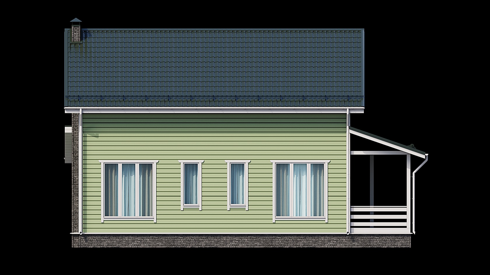 - Кровля: Волнистый лист (металлочерепица), с установкой снегозадержателей (по наружным стенам дома) в цвет кровли и водосточной системы пвх до уровня цоколя.