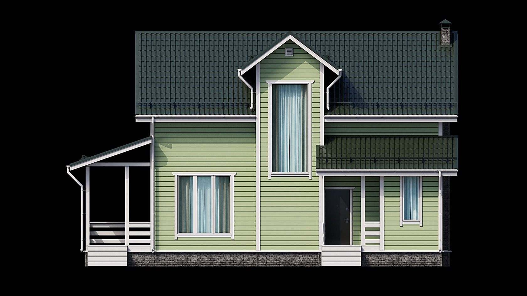 - Вентиляция: В кровле устанавливаются вентиляционные выходы в цвет кровли. Место установки определяется с Заказчиком на монтаже. Вентиляционные выходы монтируются без сборки шахт и последующего проведения внутри дома. Чердачное помещение со стороны фронтонов устанавливаются вентиляционные решетки, цвет белый.
