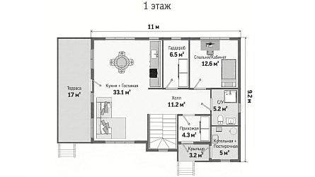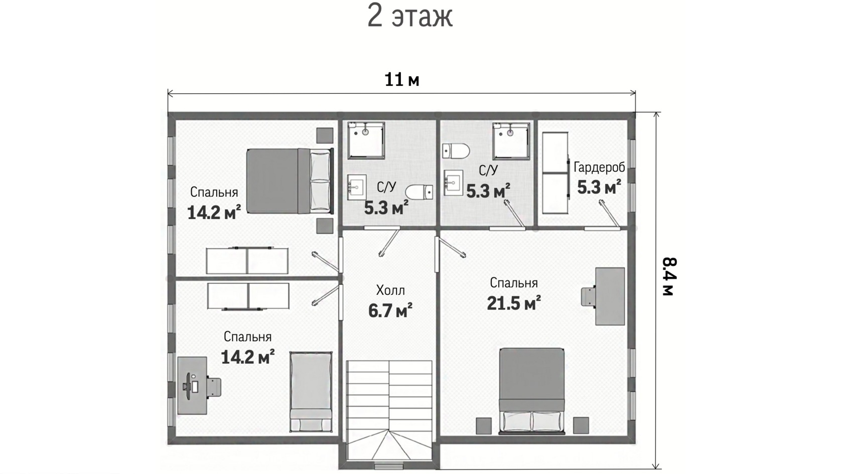 Проект двухэтажного дома Альпийский, под ключ, ламинат, Экошпон, Hauberk, коммуникации, сантехника, потолки 3м