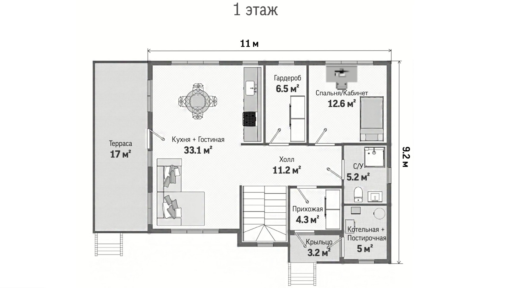 Вместительный двухэтажный дом площадью 157 м² - идеальное решение для большой семьи. 120 м² жилой зоны организованы с заботой о комфорте каждого домочадца. Каркасная технология обеспечивает надежность, а металлочерепица придает экстерьеру солидность. Это пространство, где современные технологии служат созданию уютного семейного гнезда.Характеристики
