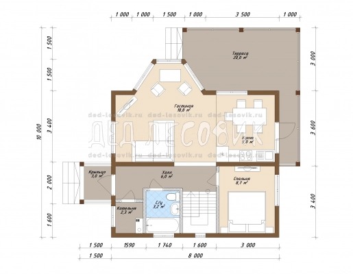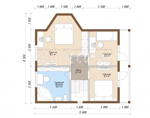 - Наружные стены сруба и несущие стены – брус 140х190 мм. камерной сушки.