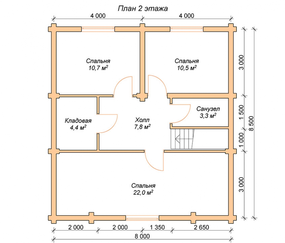 Проект двухэтажного дома Коттедж из оцилиндрованного бревна. Проект Ветрово.