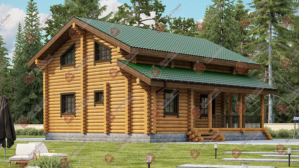 Проект двухэтажного дома Коттедж из оцилиндрованного бревна. Проект Ветрово.