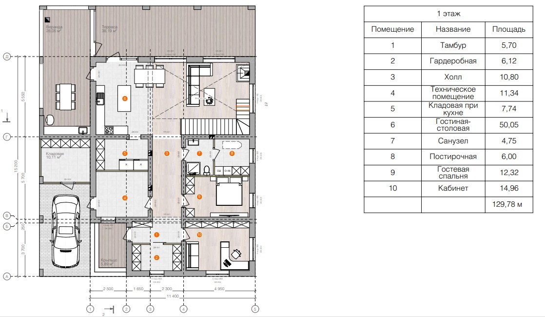 - Стропильная система Брус естественной влажности, по ГОСТ. Размер сечения 50 х 200 мм.