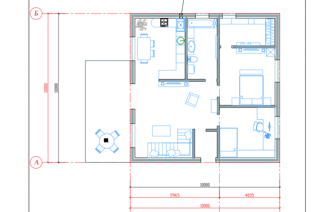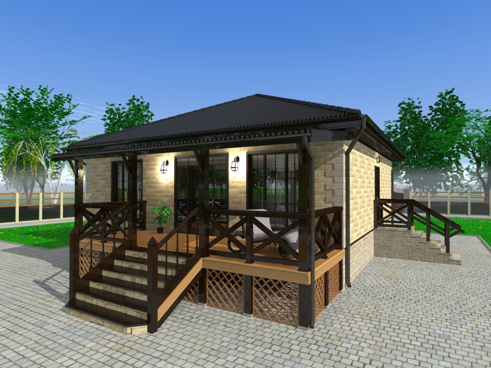 Каркасный дом площадью 100 кв.м, проект «Елизаветинская 100», с двумя спальнями и одним этажом, отличается компактностью и уютом. Каркасные стены гарантируют быструю сборку, а металлочерепица — надежность. Дом подходит для небольшой семьи или дачного проживания. Его дизайн выполнен в финском стиле.Характеристики
