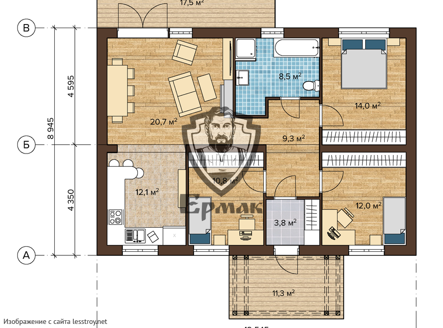 Архитектура, которая удивляет и одновременно feels like home. 93 м² — пространство для свободы и личных решений. металлочерепица придаёт дому выразительность и надёжность. Стены из керамоблока хорошо держат тепло и защищают от шума. Архитектура выполнена в стиле дома в стиле модерн.Характеристики