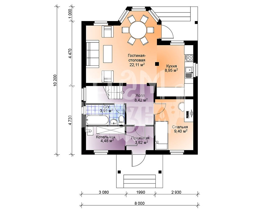 - Газобетонные блоки толщиной стены 375 мм, устанавливаются на 2 ряда рабочего кирпича М150 с дополнительной гидроизоляцией цоколя и монтируются на специальный клей; перемычки окон/дверей, а также армопояс монолитные армированные с утеплением. Высота этажа 2,8 м.