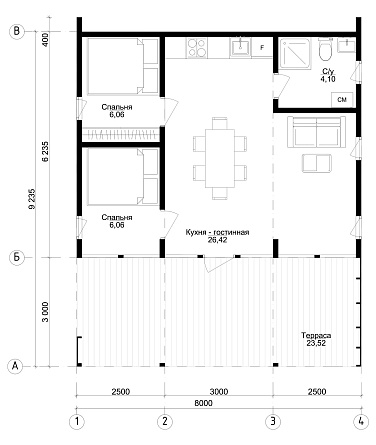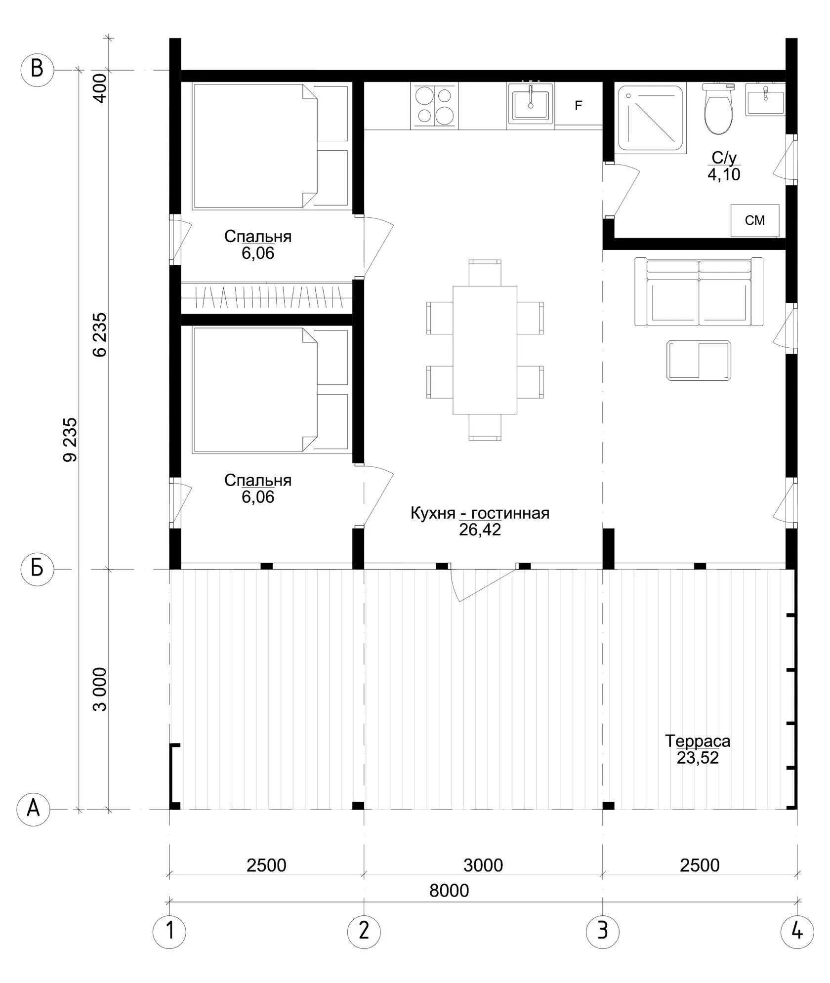 Компактный дом площадью 43 м² с жилой зоной 32 м² идеален для небольшой семьи. Две спальни и один санузел создают уютное и функциональное пространство. Каркасная конструкция гарантирует тепло и надежность, а естественное освещение наполняет интерьер светом. Это место, где царит комфорт и спокойствие.Материалы и перечень работ