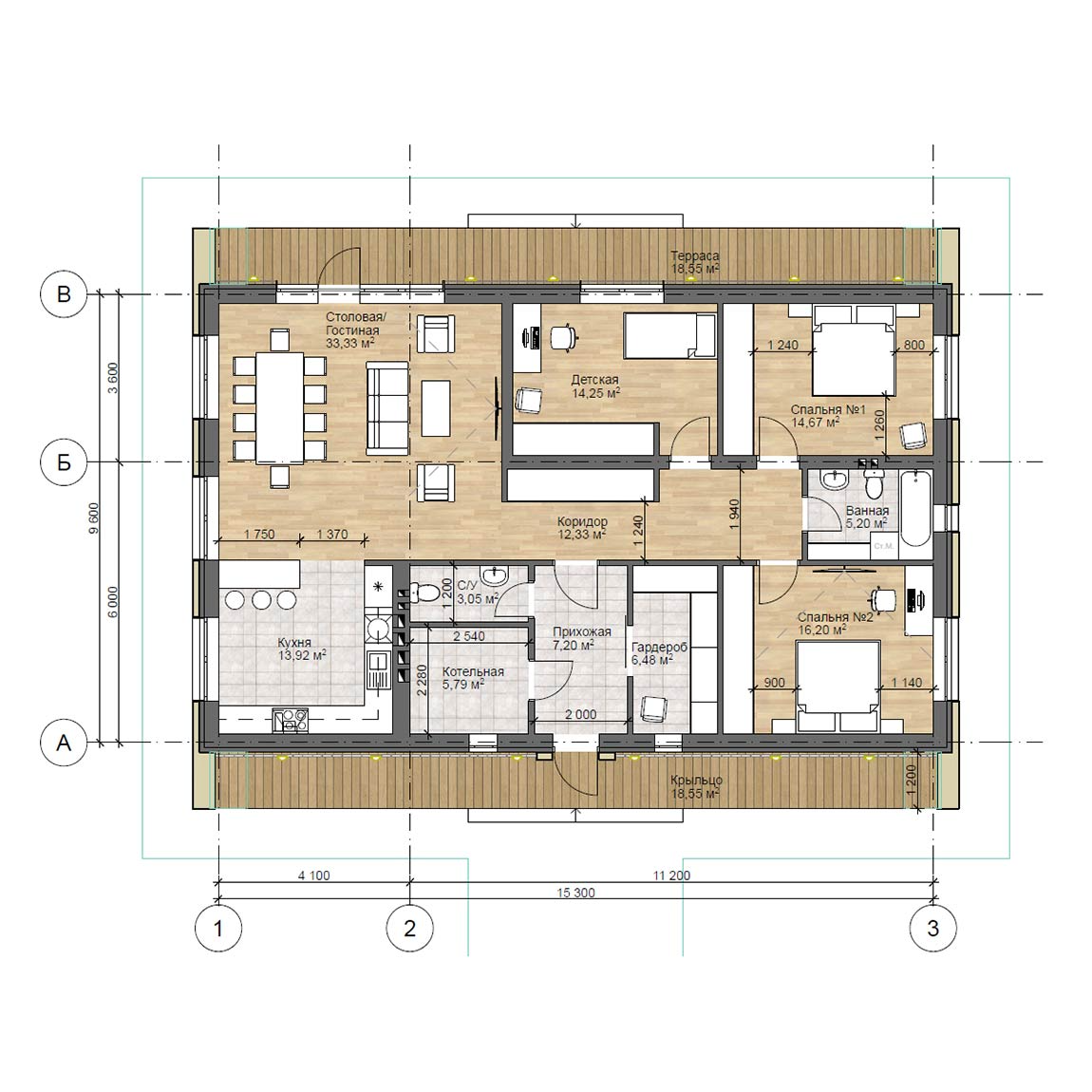 Проект одноэтажного дома Проект 7015 - каркасный дом по финской технологии