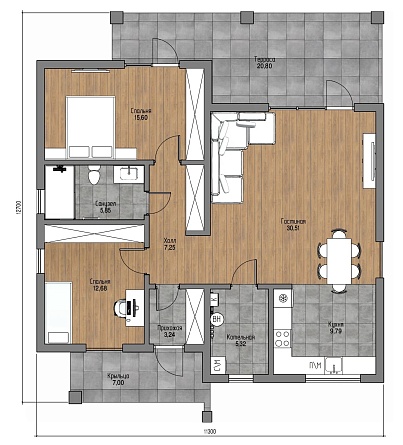 Проект одноэтажного дома Flat-01