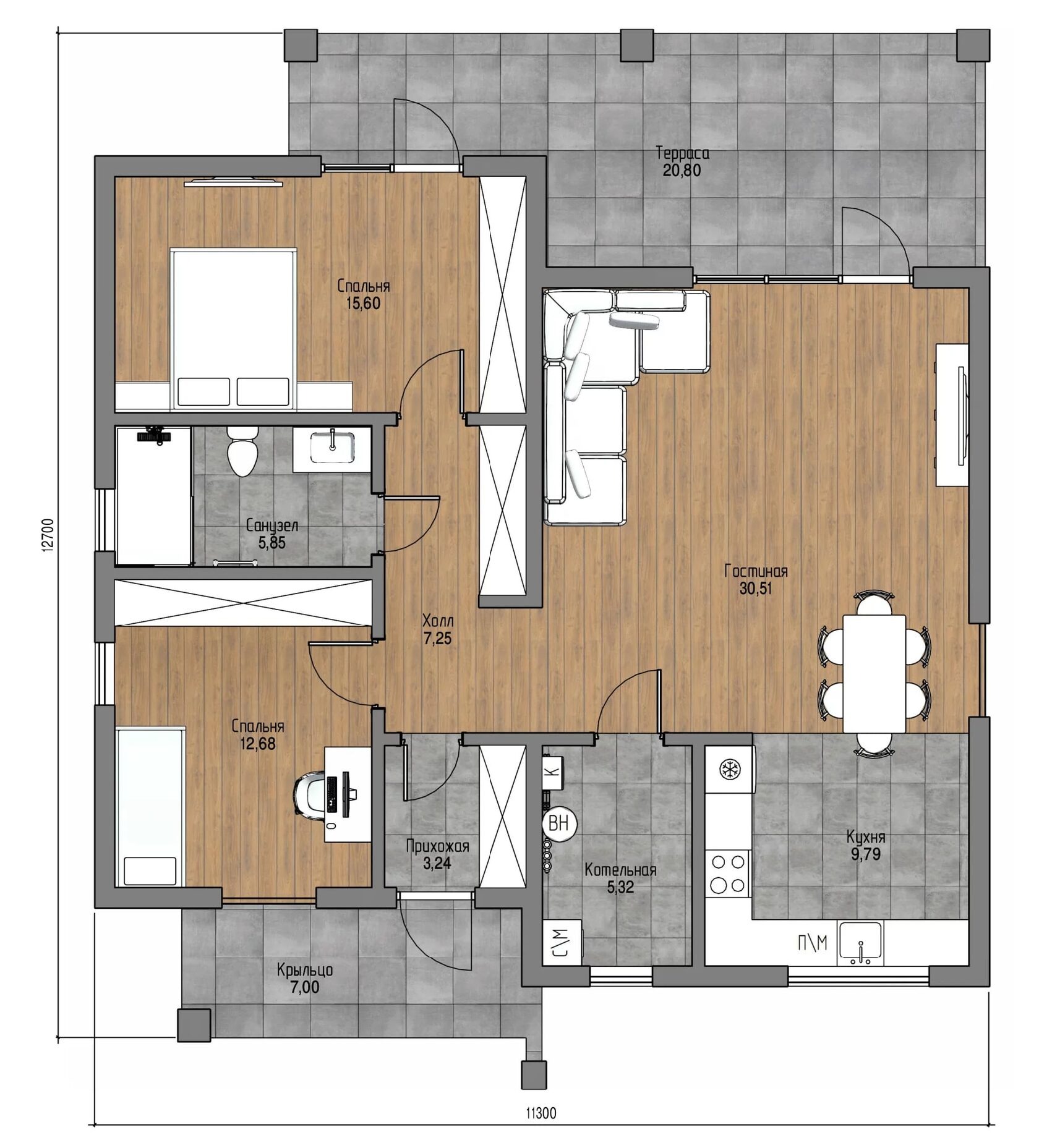 Flat-01 — стильный дом площадью 118 м² с жилой зоной 80 м², где современные решения сочетаются с практичностью. Газобетонные стены сохраняют тепло, а открытая планировка наполняет пространство воздухом и светом. Металлочерепица добавляет фасаду выразительности, а продуманные детали интерьера делают дом уютным. Отличный выбор для тех, кто ценит лаконичность и удобство.Характеристики