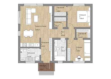 Уютный дом площадью 88 м² из газобетона предлагает комфортное решение для семьи с двумя детьми. 65 м² жилой зоны организованы с умом, создавая атмосферу защищенности и покоя. Современные материалы делают дом теплым и надежным, а продуманная планировка добавляет пространству гармонии. Это жилье, где скромные размеры сочетаются с семейным уютом.Характеристики