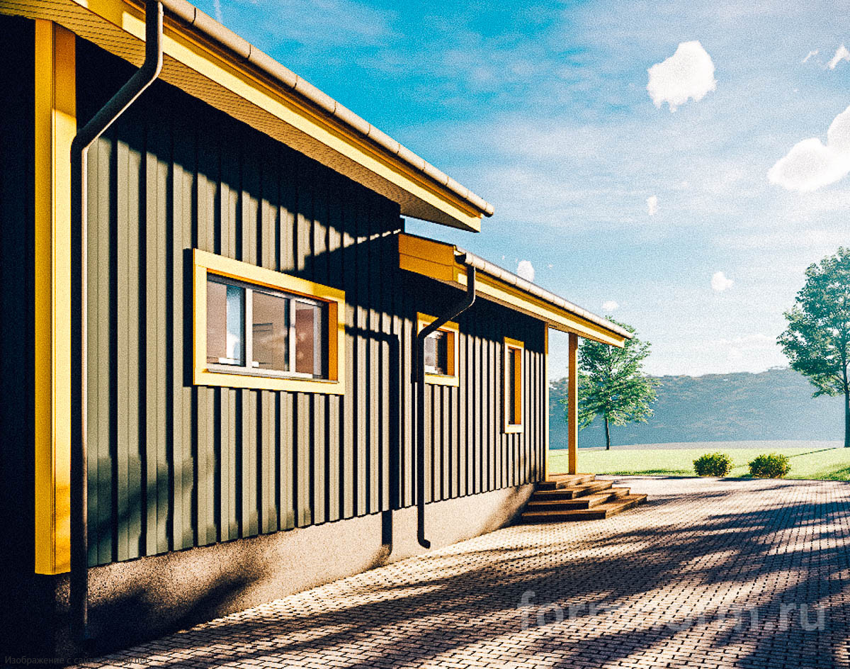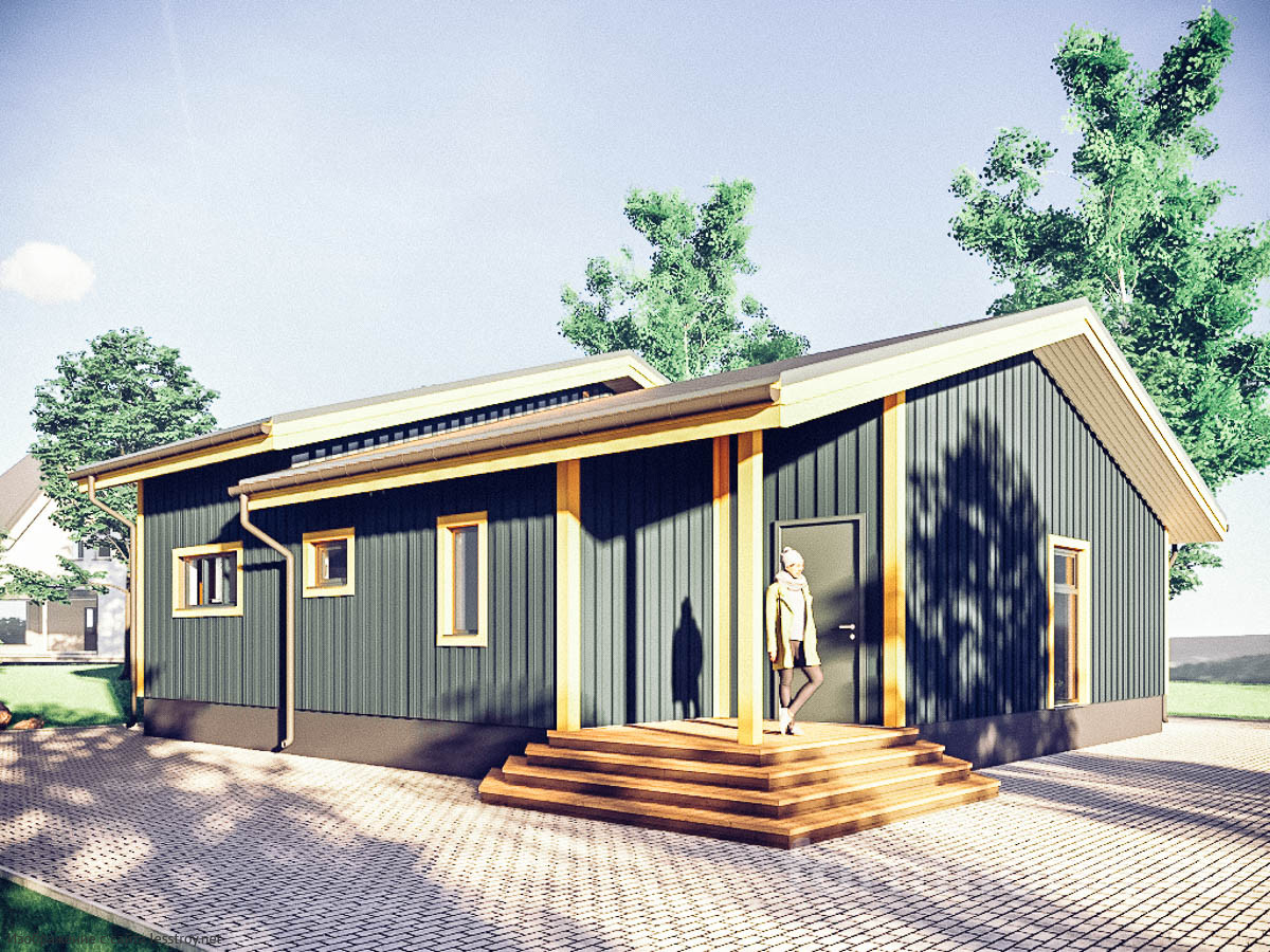 Современная интерпретация финского дома с необычной сводчатой крышей. Три просторные спальни расположены вокруг светлой гостиной-столовой. Металлочерепица гармонично сочетается с деревянными фасадами. Большие панорамные окна наполняют пространство светом и открывают виды на природу.Характеристики