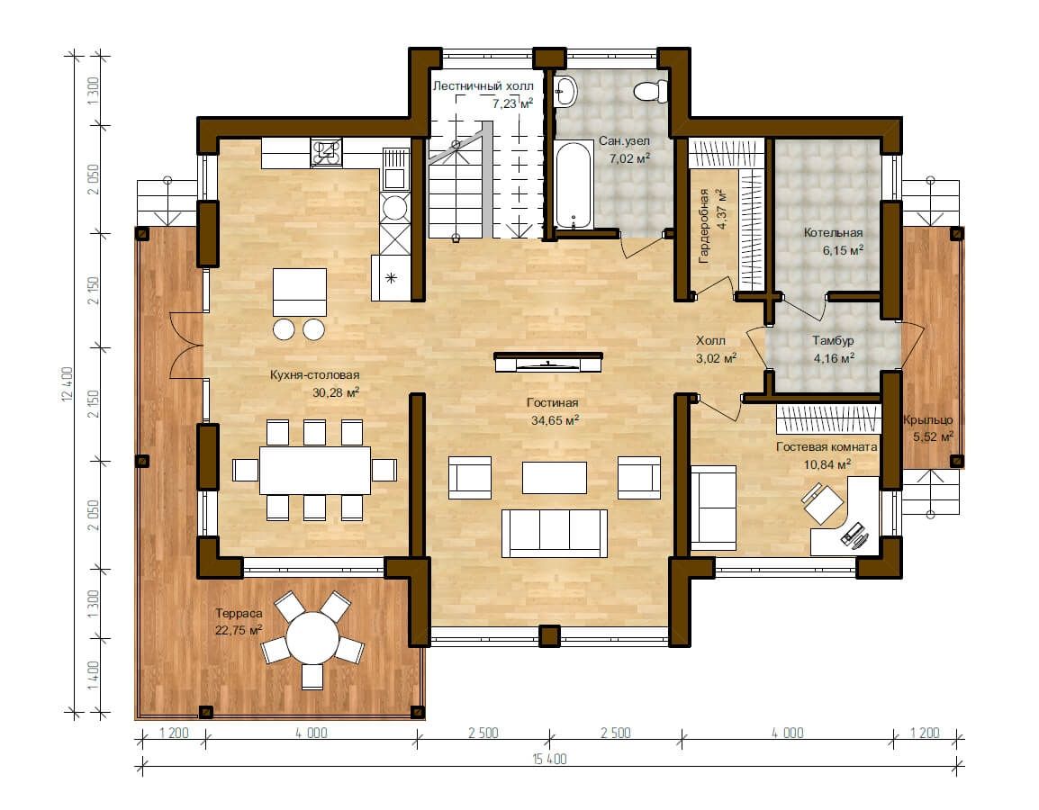 - Внешние стены: газобетонные теплые блоки YTONG 375 или POROTHERM 38 Thermo