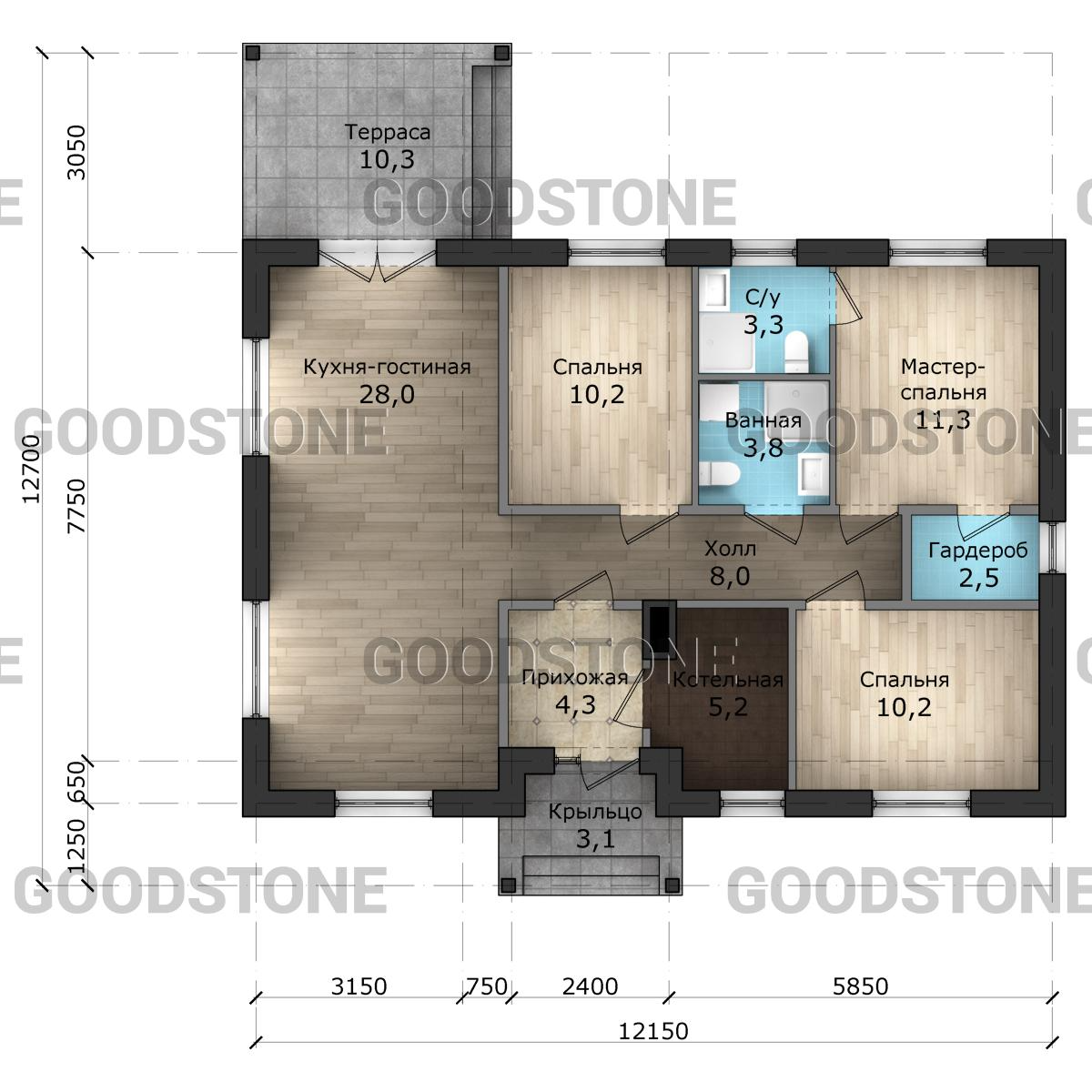 Проект одноэтажного дома ГБ-100