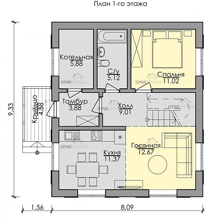 - Внешние несущие стены из блоков Porotherm плотность М100 – 380 мм