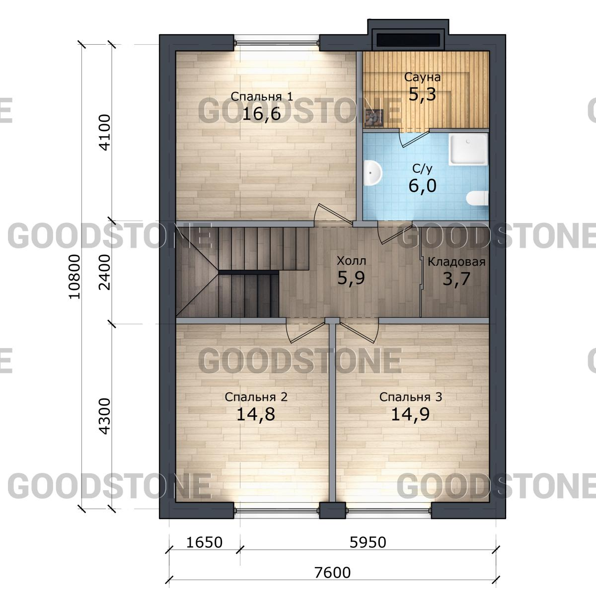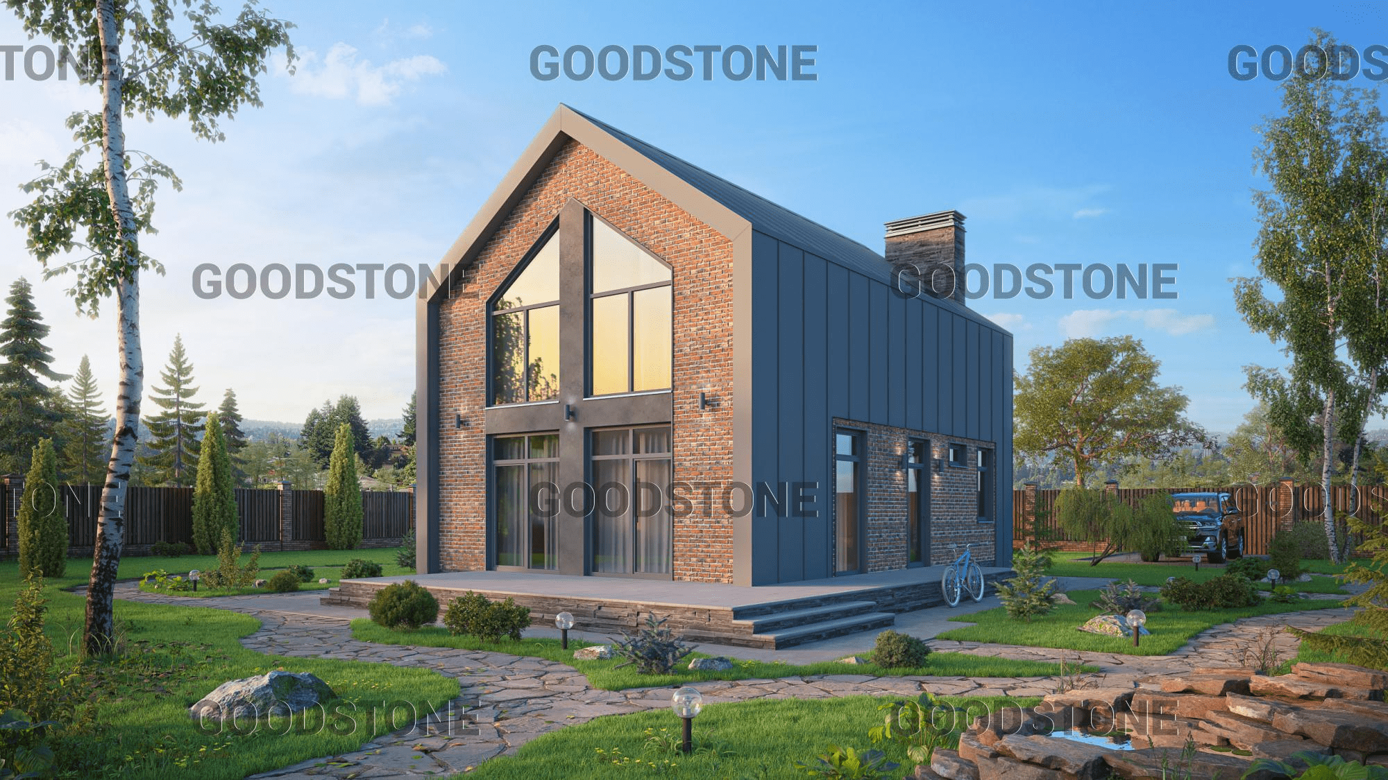 - Усиленная стропильная система (несущие стропила 150х50, 200х50 мм по расчету, ригели 150х50 мм, контробрешетка 50х50 мм, обрешетка 100х25 мм, мембрана JUTA Ютавек). Обработка древесины огнебиозащитным составом