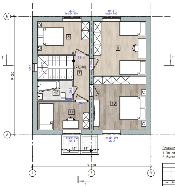 - Несущие стены толщиной 300 мм, благодаря высоким теплотехническим свойствам с учетом внешней отделки (кирпичная кладка/утепленные панели под кирпич) проходят норму теплосопротивляемости и не нуждаются в дополнительном утеплении.