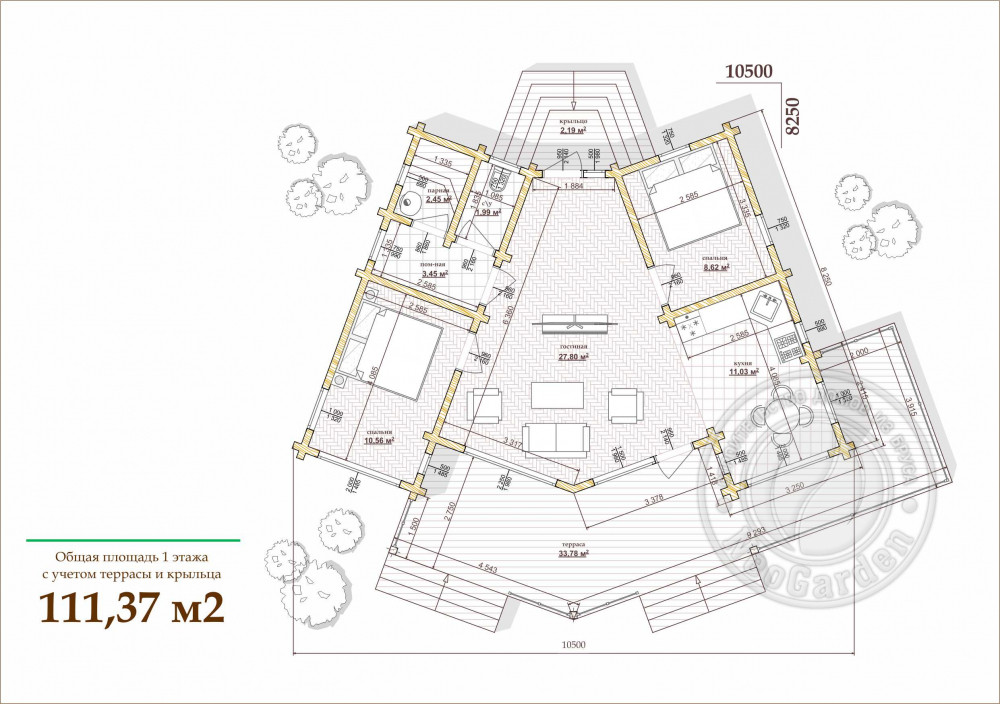 Дом из бруса площадью 101 м² отличается лаконичным и стильным дизайном. Натуральное дерево придает интерьеру тепло и уют. Планировка продумана так, чтобы каждый метр был функциональным. Идеальный вариант для небольшой семьи.Характеристики