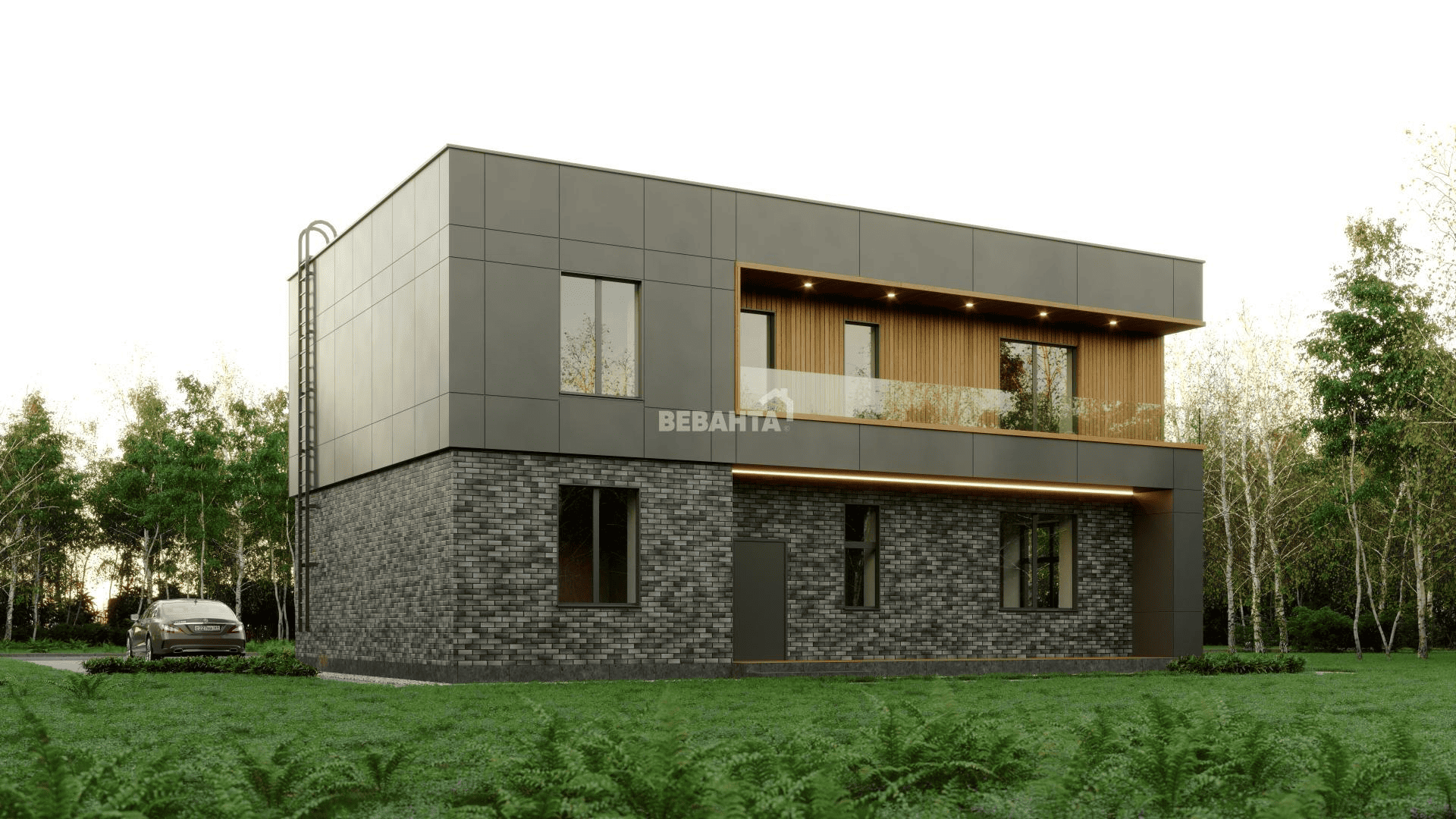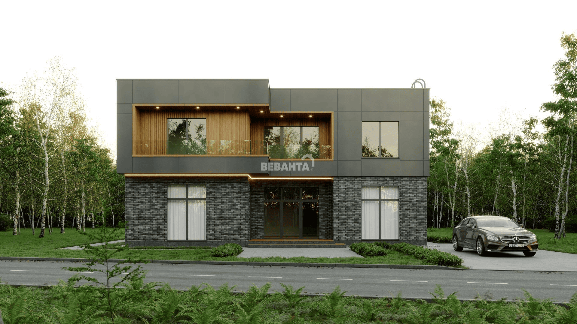 - Кровля – гибкая черепица «Технониколь», металлочерепица («Дельта», «Дёркен», «Вилпе» и др.), кликфальц (Grandline) или цементнопесчаная черепица (BRAAS). Цвет - в ассортименте.