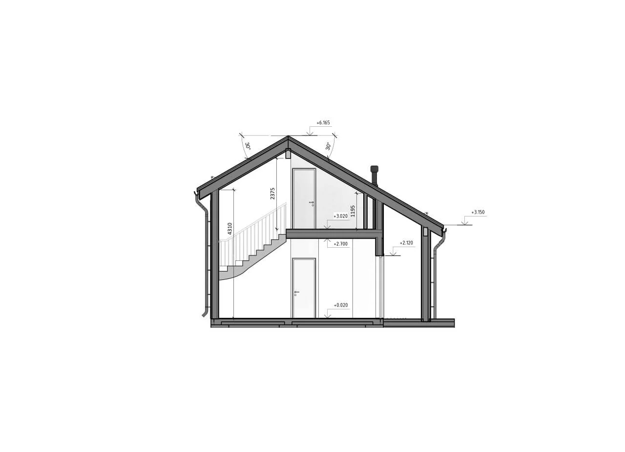 - Высота дома: 6 м