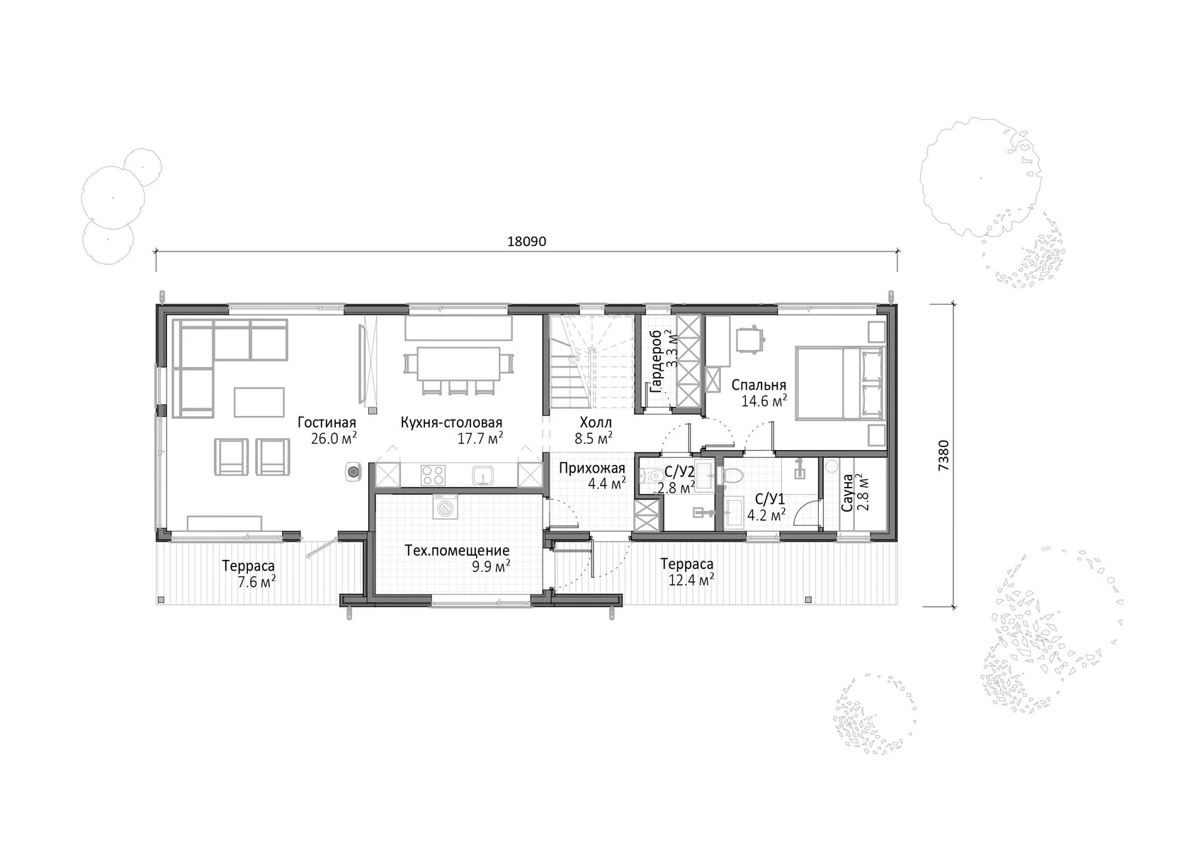 Проект одноэтажного дома Грининген 150