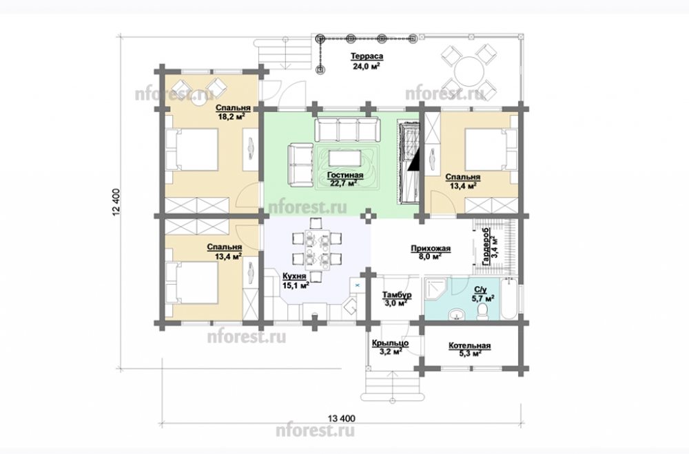 Проект одноэтажного дома Дом из профилированного бруса 9 х 11