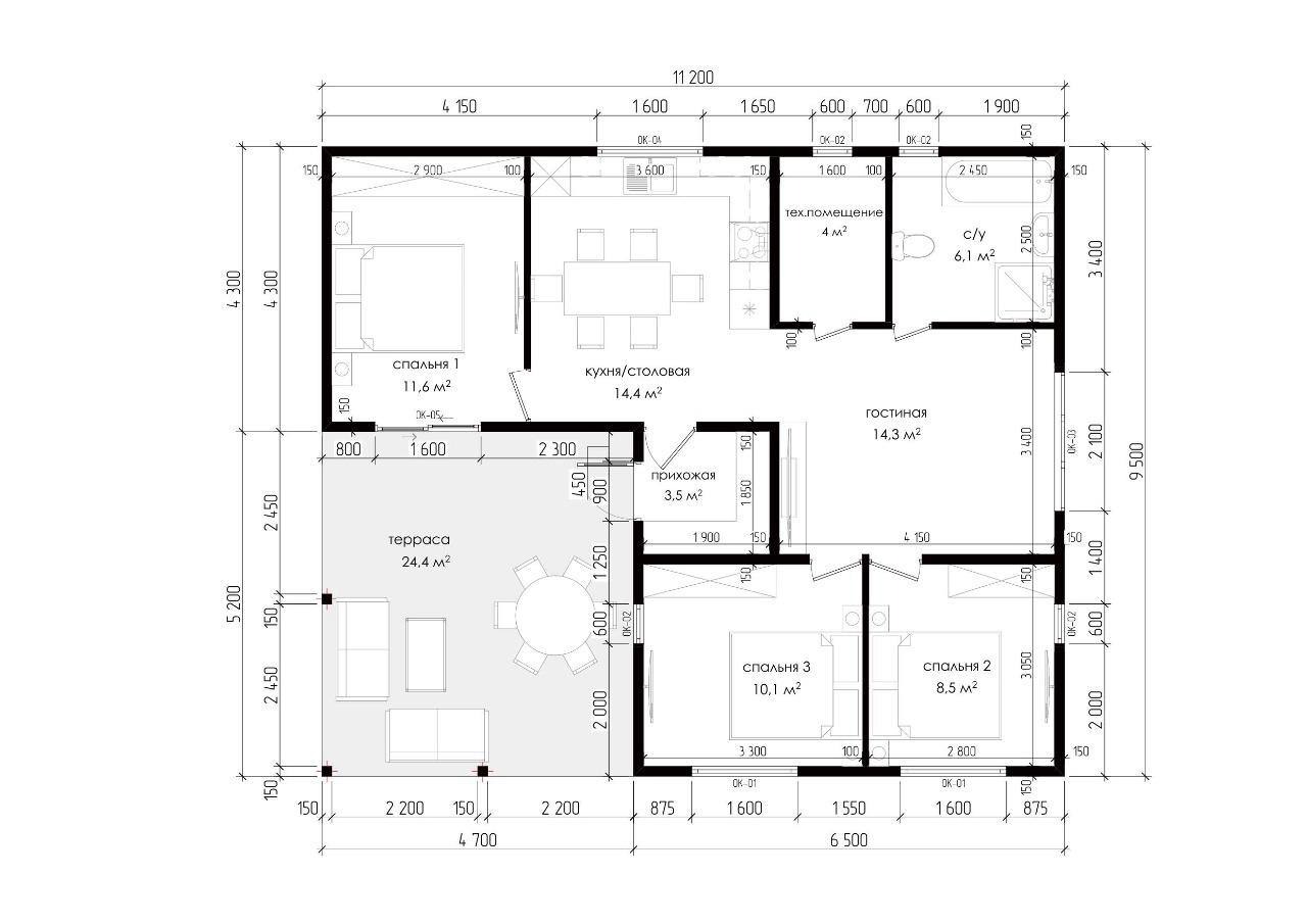 Проект одноэтажного дома Пригородный, под ключ, ламинат, двери Экошпон, отделка Hauberk, коммуникации, сантехника.