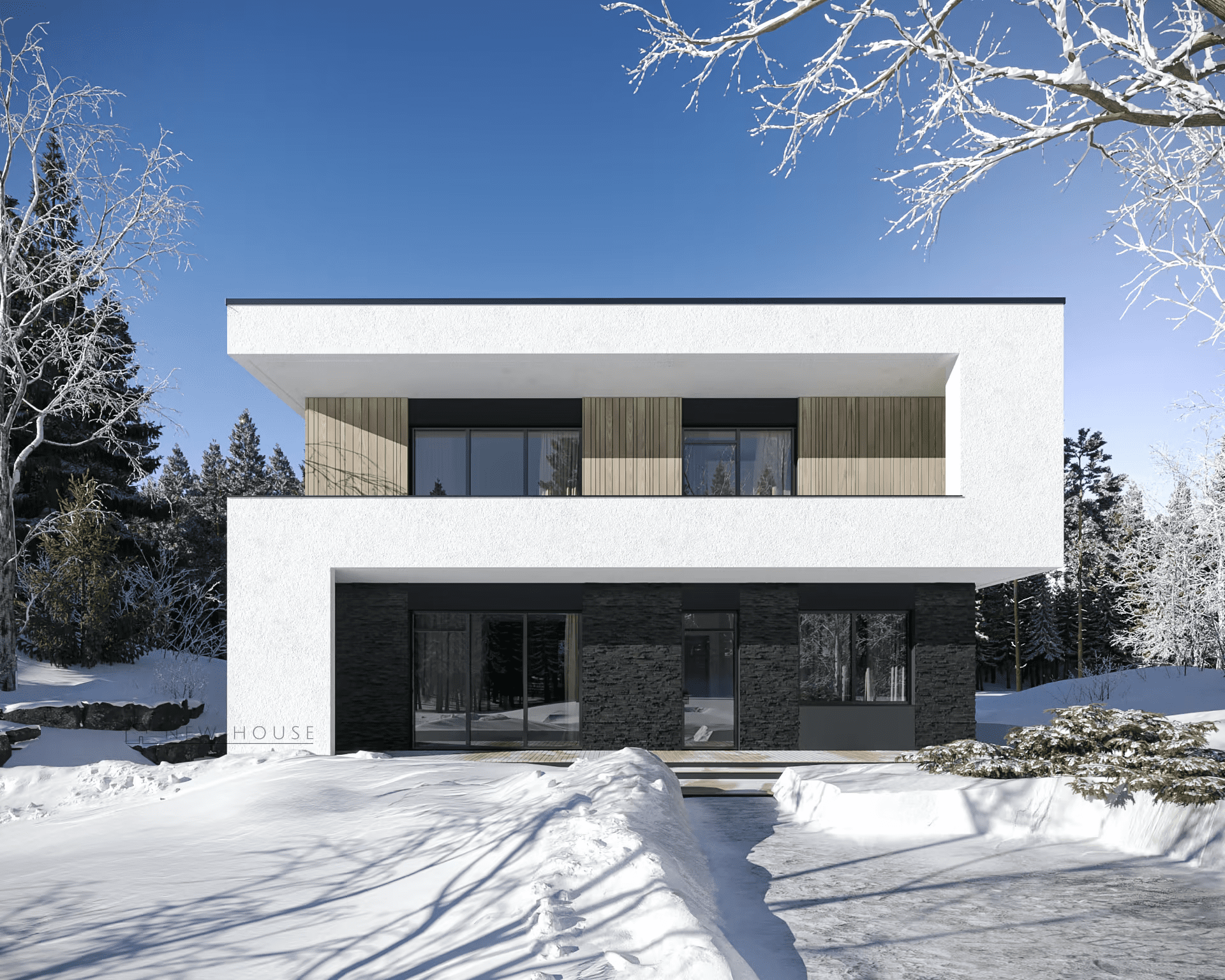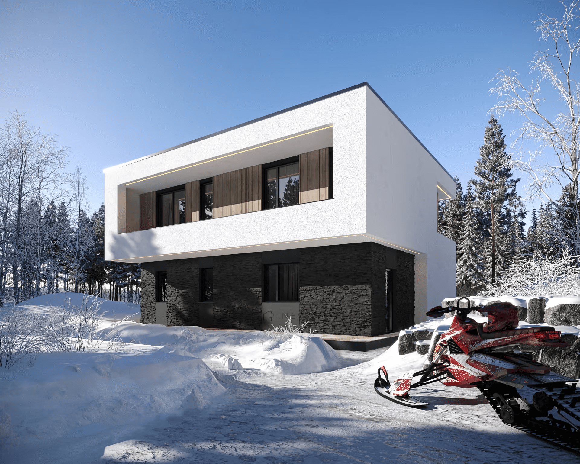 - ЧИСТОВАЯ ОТДЕЛКА ВНЕШНИХ СТЕН - планкен из хвойных пород дерева с заводской покраской или покрытием маслом-воском, цвет натуральный в комбинации с планкеном графитового цвета, аквапанели с декоративной штукатуркой светлого оттенка