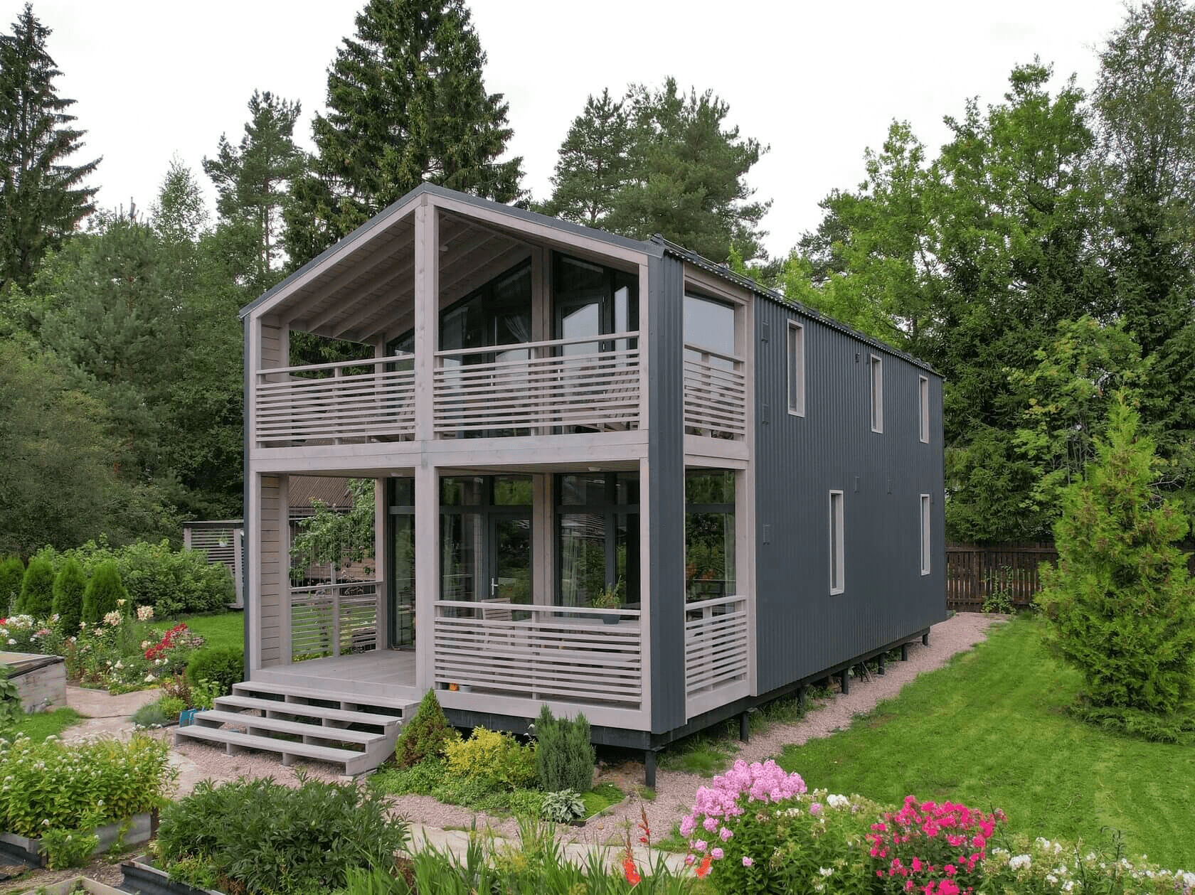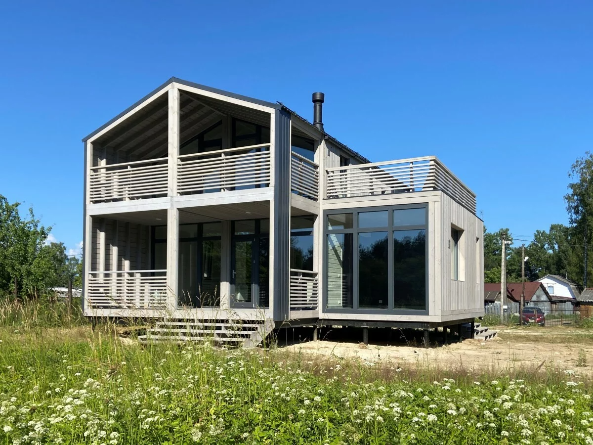 - Террасы — террасная доска хвойных пород (толщина 28мм), серая уличная пропитка Sikkens