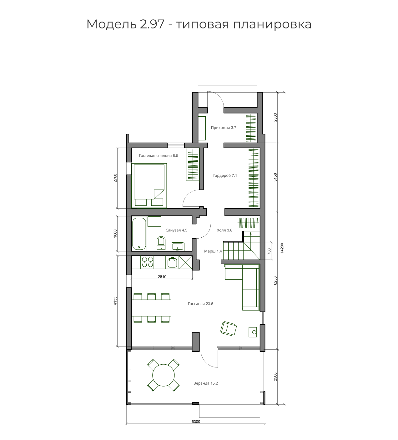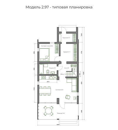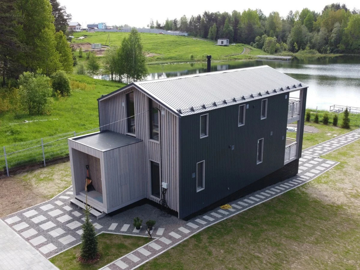 - Кровля — профлист Ral 7024, снегоудержатели по периметру кровли и над дымоходом