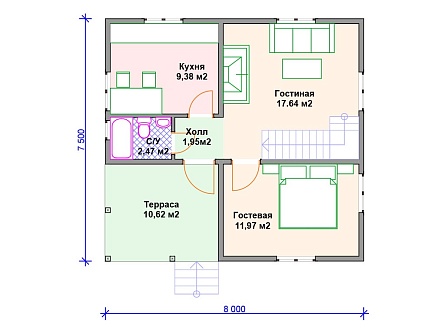 Проект двухэтажного дома И-069