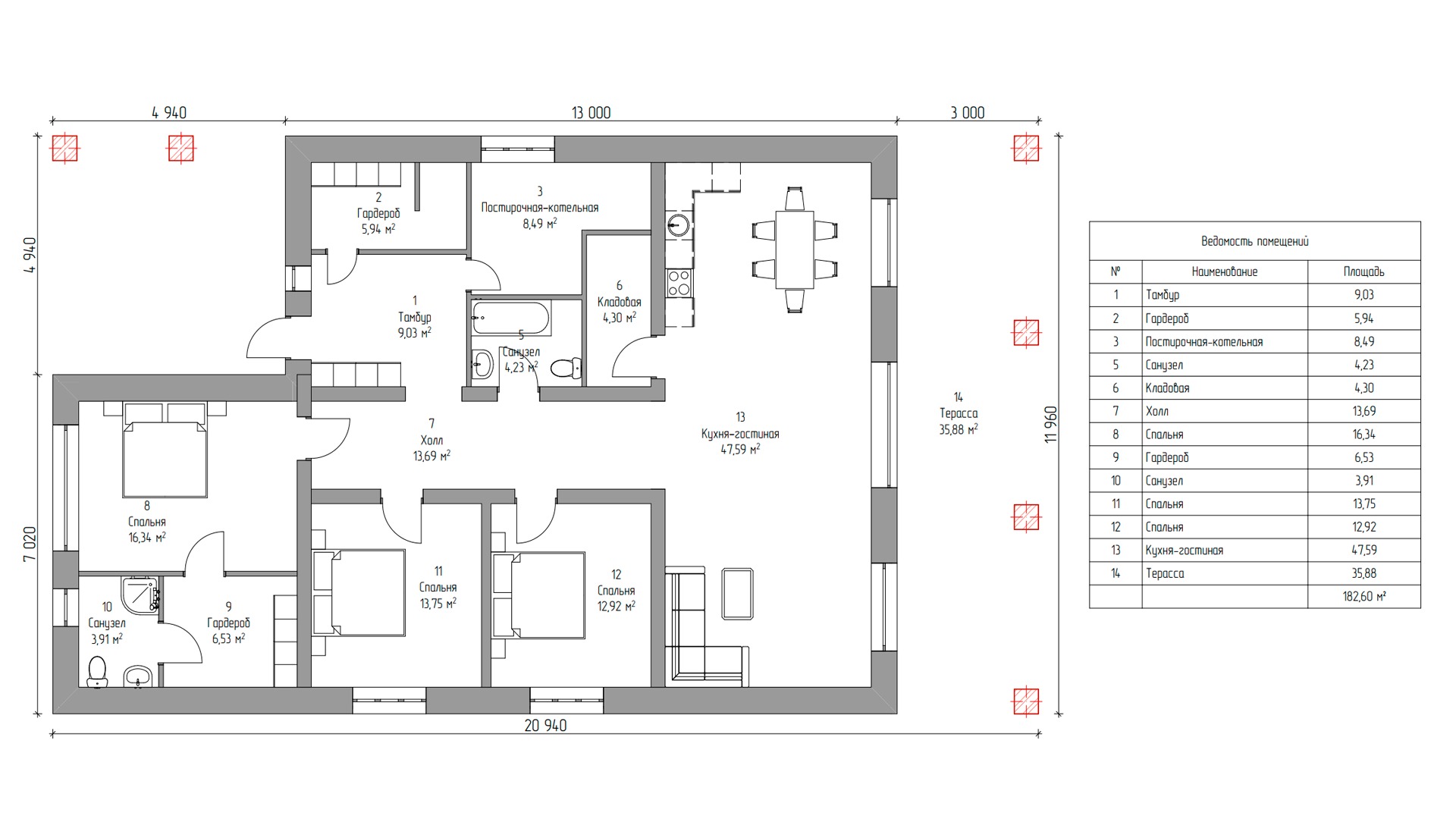 - Площадь кровли: 152 м2