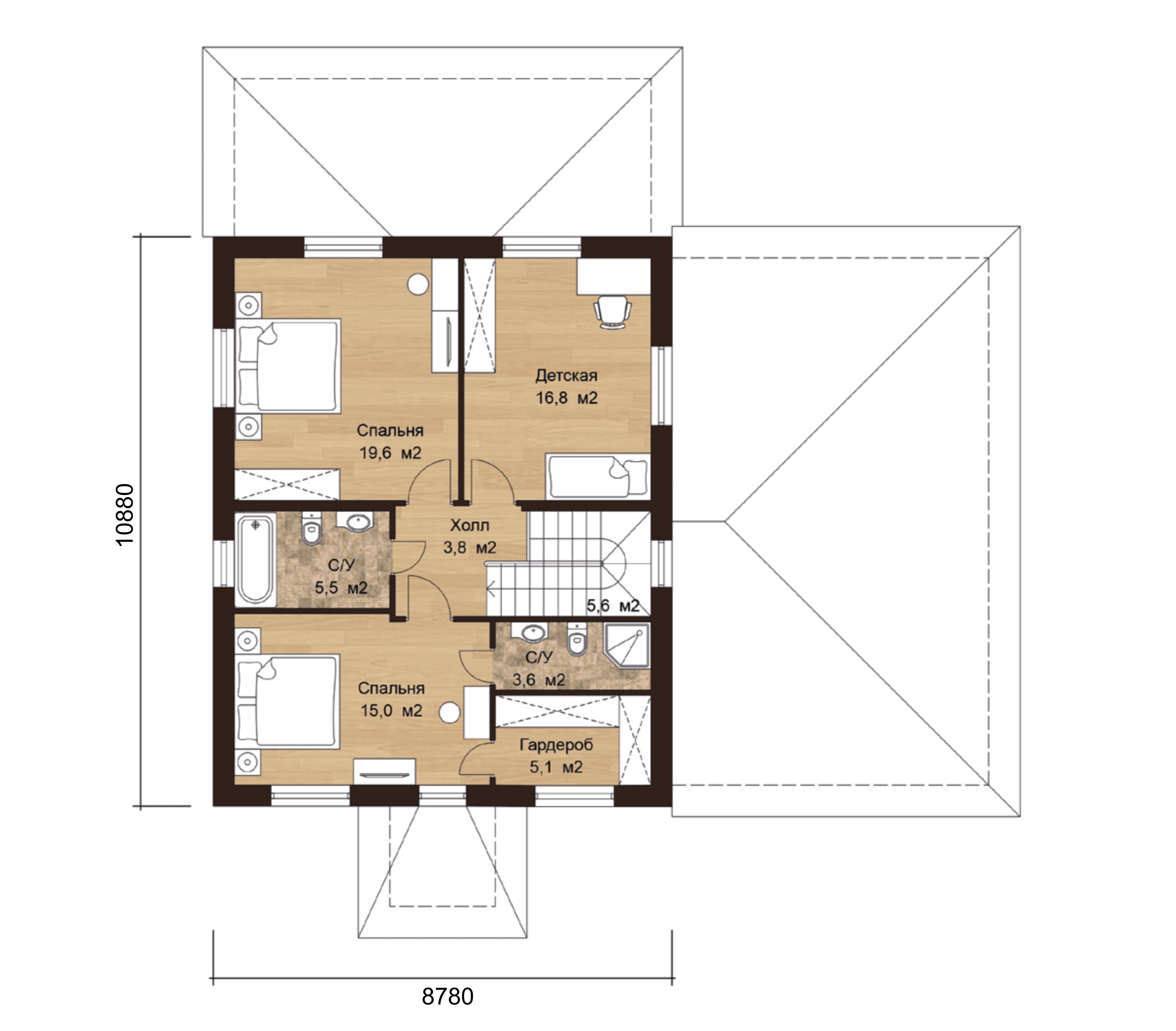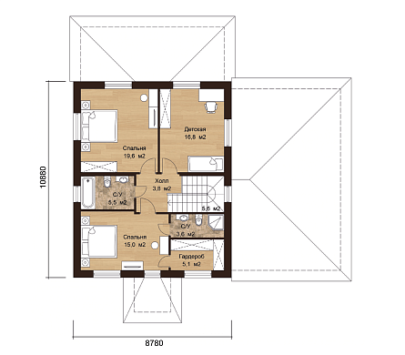 - Площадь кровли: 195 м2