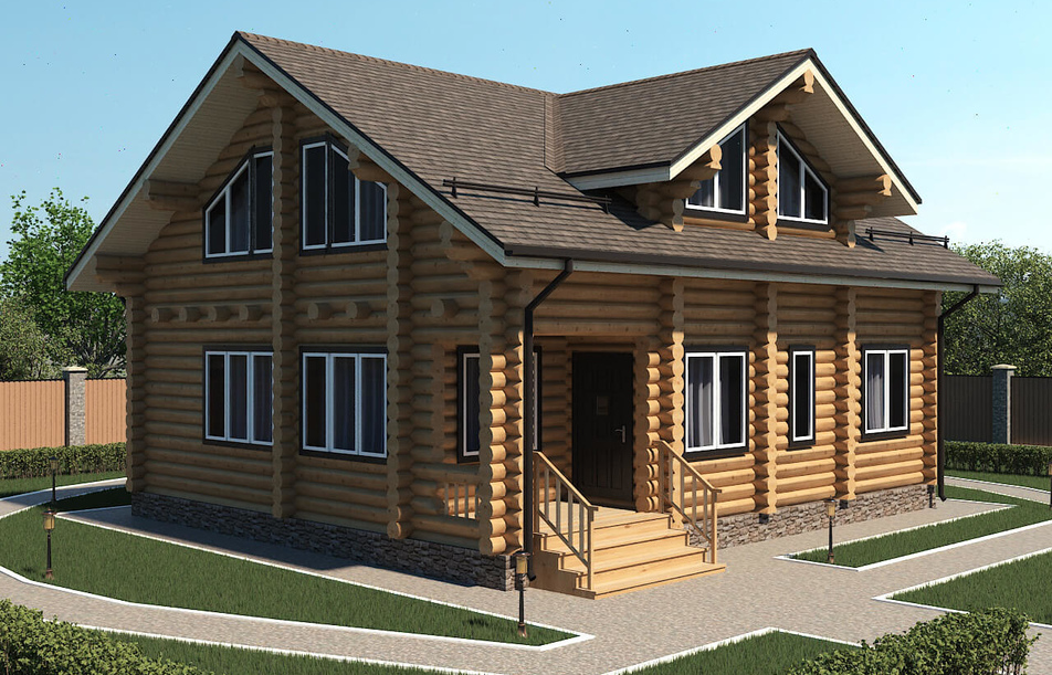 - Все фронтоны дома – из оцилиндрованного бревна (или бревна ручной рубки, если заказываете строительство из этого материала);