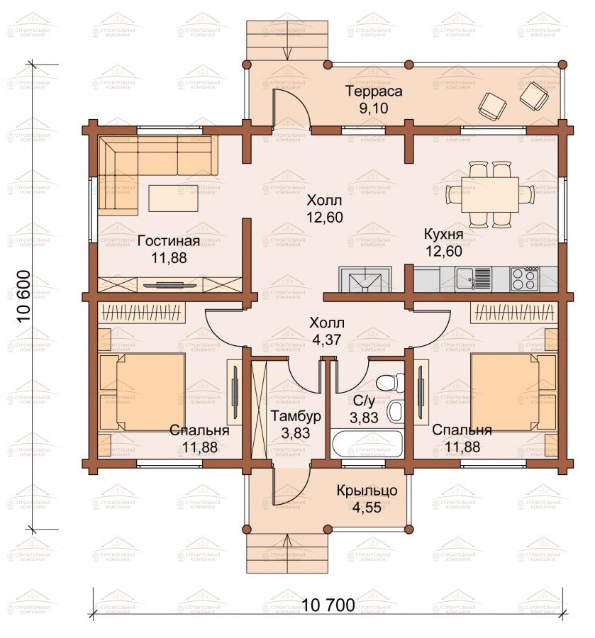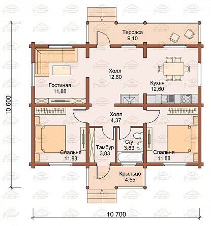 Проект одноэтажного дома Дом из бруса ДБ-63 проект Бюджетный