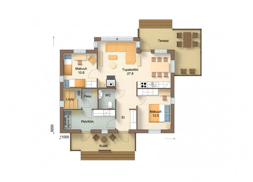 - Отделка стен и потолков: Вагонка евростандарт, хвоя/сосна