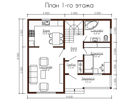 - Каркас стен выполняется из строганной доски сечением 45×140 мм - 45х190 мм (в зависимости от выбранной комплектации). Шаг вертикальных стоек каркаса 590 мм.