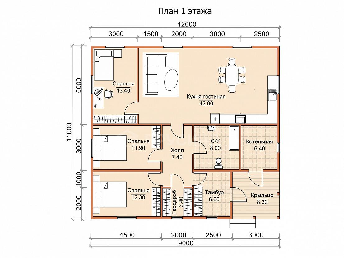Проект одноэтажного дома К-140