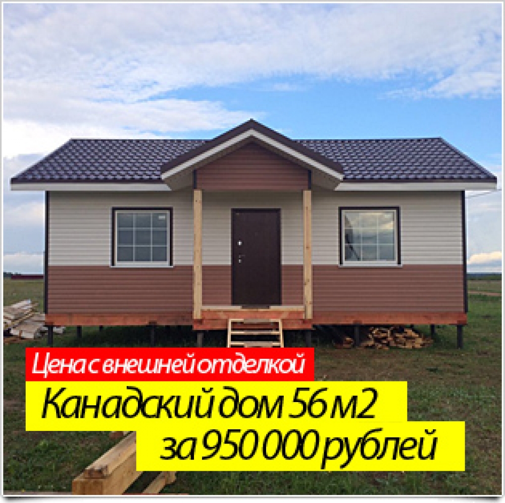 Проект одноэтажного дома Канадский дом из сип-панелей площадью 56 кв. м.