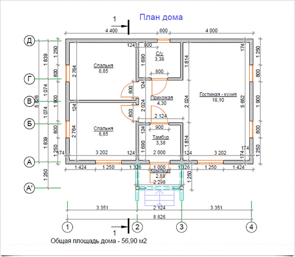 - Общая площадь: 56 м2