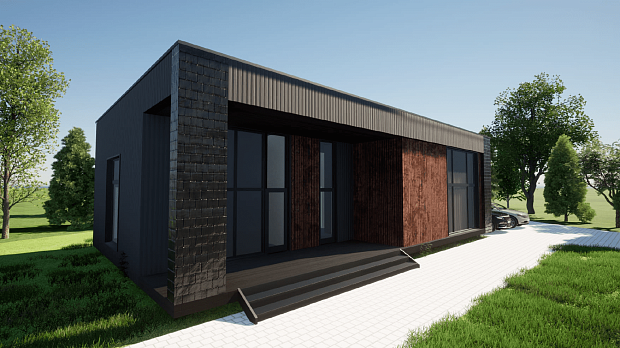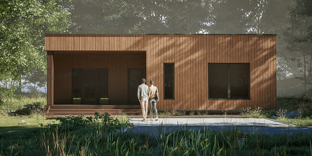 Проект одноэтажного дома Пригородный, под ключ, ламинат, двери Экошпон, отделка Hauberk, коммуникации, сантехника.