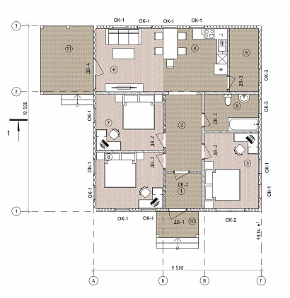 Проект одноэтажного дома Каркасный дом 1 этажный 109 м²