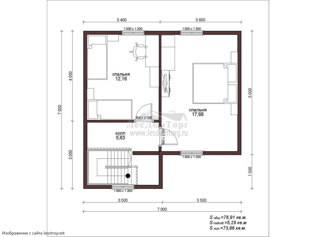 Проект двухэтажного дома Каркасный дом 7.0 х 7.0 м «Лотос-2К»