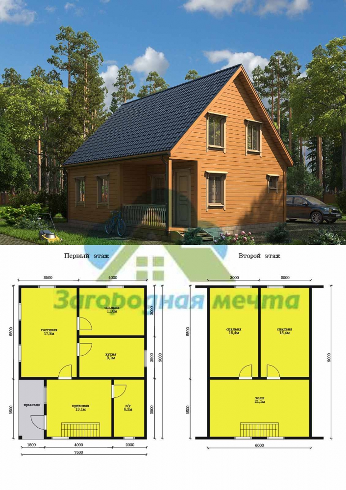 Проект двухэтажного дома Каркасный дом 7х9 м..Проект 60К