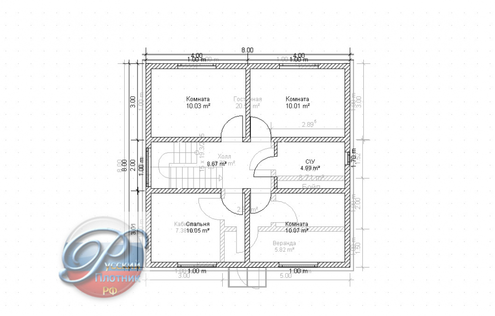 Проект двухэтажного дома Каркасный дом 8х8 (8 на 8), проект двух этажного дома