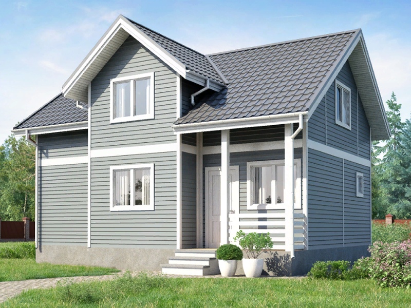 Проект двухэтажного дома Каркасный дом 8х8 с большой террасой (К-37)