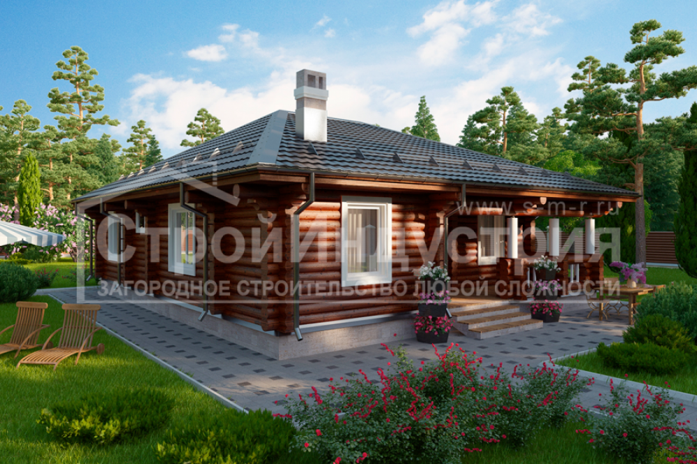 Жом, которое создаёт ощущение комфорта и свободы одновременно.Тёплый и уютный объём — 102 м². Архитектура выполнена в стиле дома в стиле русский. Рубероид придаёт дому выразительность и надёжность. Одноэтажная современная планировка организует пространство максимально эффективно.Характеристики