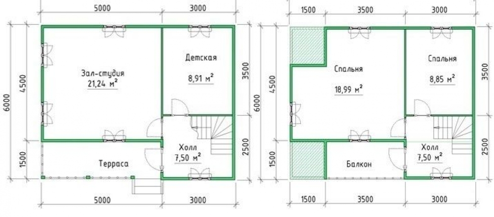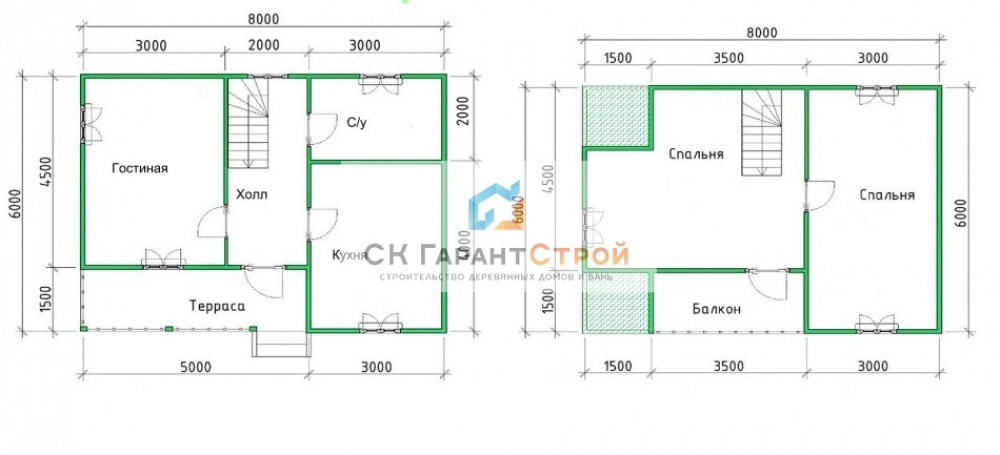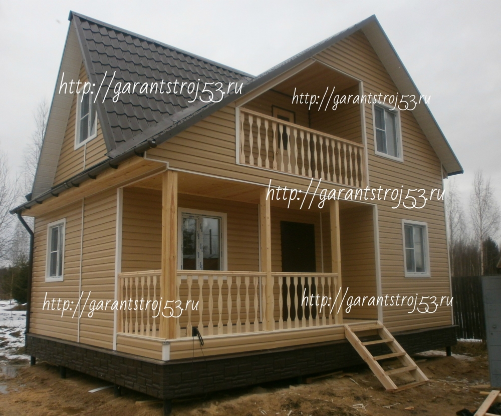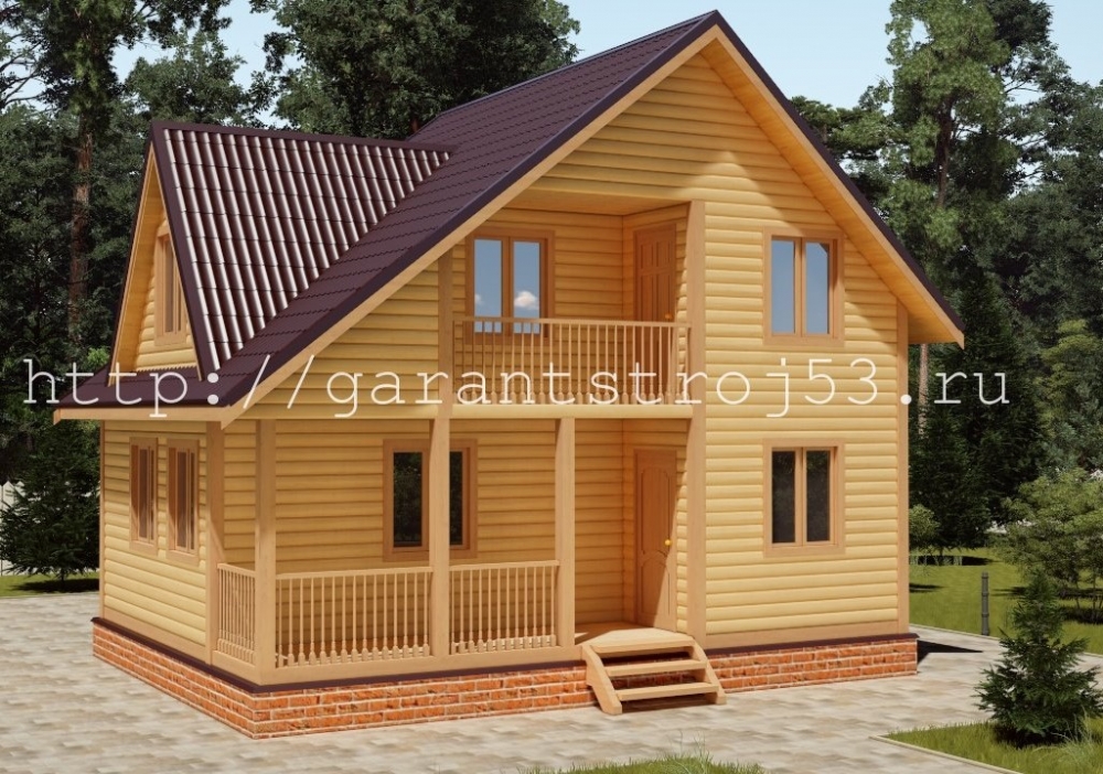 Проект двухэтажного дома Каркасный дом размером 6х8м с мансардным этажом+терраса + балкон Проект Д-22