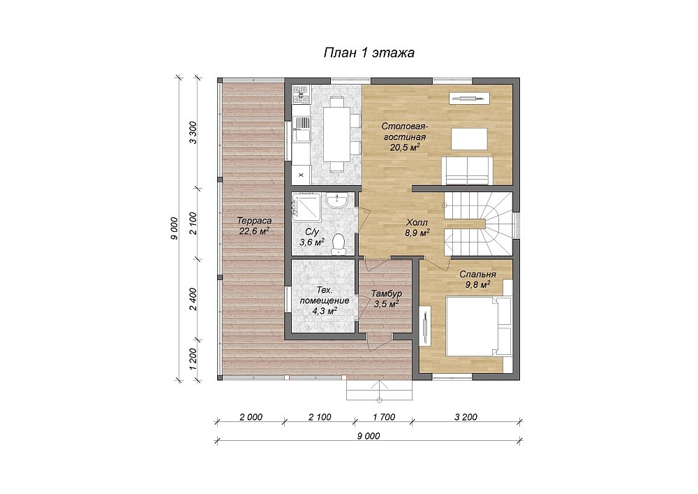 - Весь каркас и отделочные материалы из сухой строганной доски 1 сорта с перекрестным утеплением.